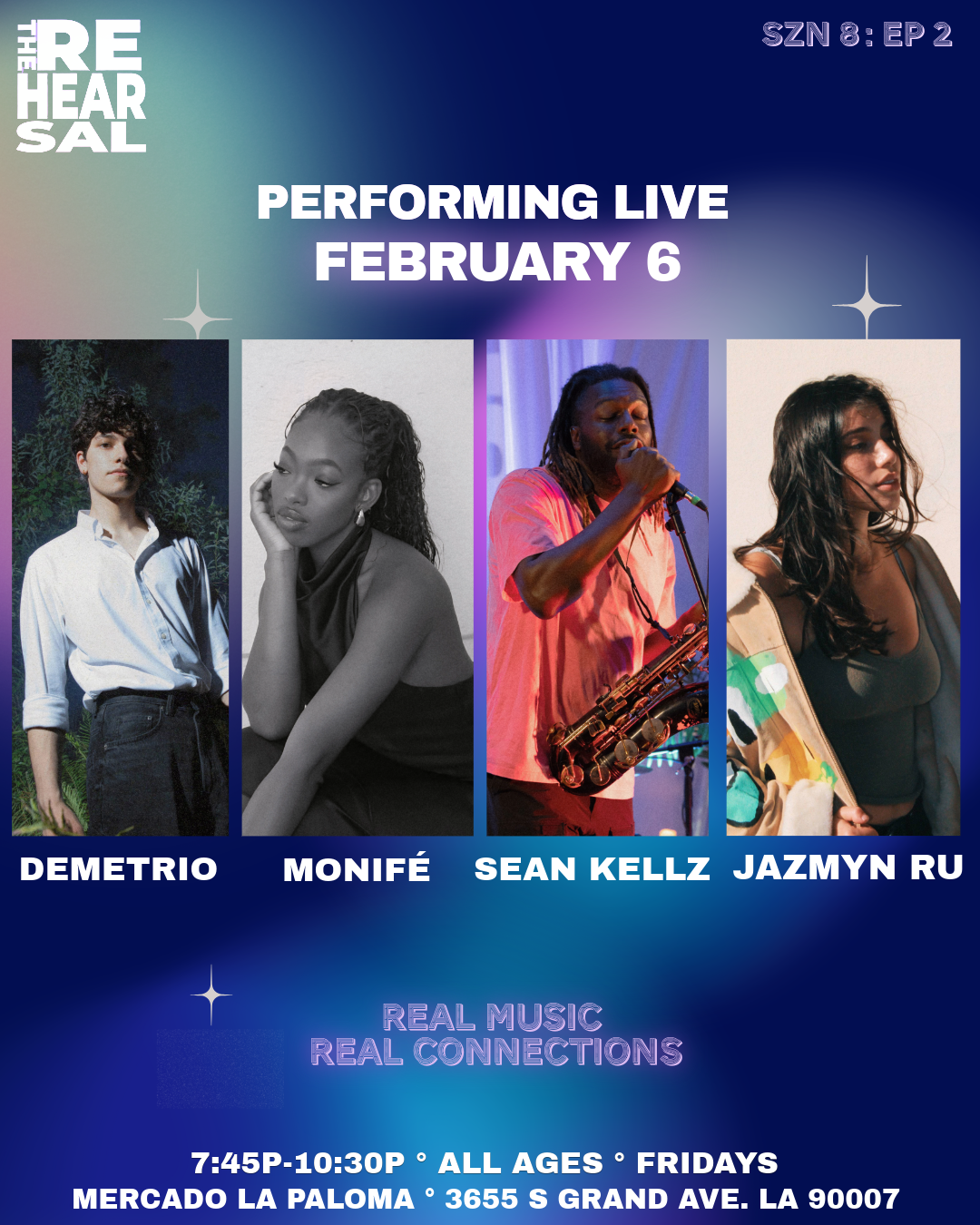 The Rehearsal continues its eight-season with an evening of live music, artistry, and community connection in South Los Angeles. Known for its intimate setting and welcoming atmosphere, the series brings together emerging and established artists for performances where music comes alive.